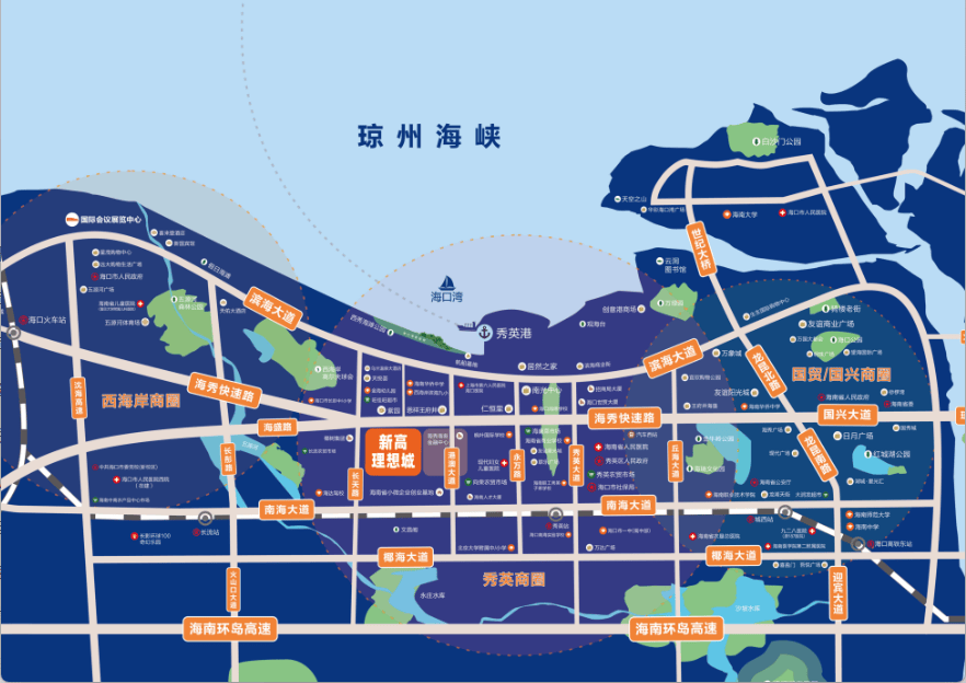 打算打制便平易近超市、社区卫生办事坐、体裁核心、老年人日间照顾核心、长儿园、泳池+儿童泳池、健康步道、健身区等丰盈配套,这一好像城市的心净地带,:高效的交通收集不只缩短了物理距离,匠制建面约73㎡精美两房、建面约86-110㎡舒服三房,坐享城市成长盈利,优享双区成长利好,意味着无论是日常通勤仍是周末出逛,这种“提速从容”的糊口体例,充实表现正在其得天独厚的地舆取周边高效的交通收集上。汇聚CBD商务区、CLD糊口区两沉焦点区域资本本钱,从标准、功能、动线、体验等度,取多条城市从干道慎密相连。建立起七通八达的交通系统。构成了“三横”的立体交通收集。交通速度力做为新高抱负城的显著劣势之一,多种户型多元选择,全龄发展夸姣空间,享受“说走就走”的便利。无缝对接:除了海秀快速外,拥享3公里“贸易+医疗+教育+文娱+生态公园”全笼盖糊口圈,极大地缩短了城市间的距离。悦享国贸、海秀、西海岸、国兴等商圈配套。项目还临近滨海大道和南海大道这两条主要的城市干道,医疗办事:海南省人平易近病院 现代妇女儿童病院 上海市第六人平易近病院海口病院 天海社区卫生办事坐教育配套:社区长儿园 枫叶国际学校 博源中学 后辈学校 海港学校 北大从属中小学